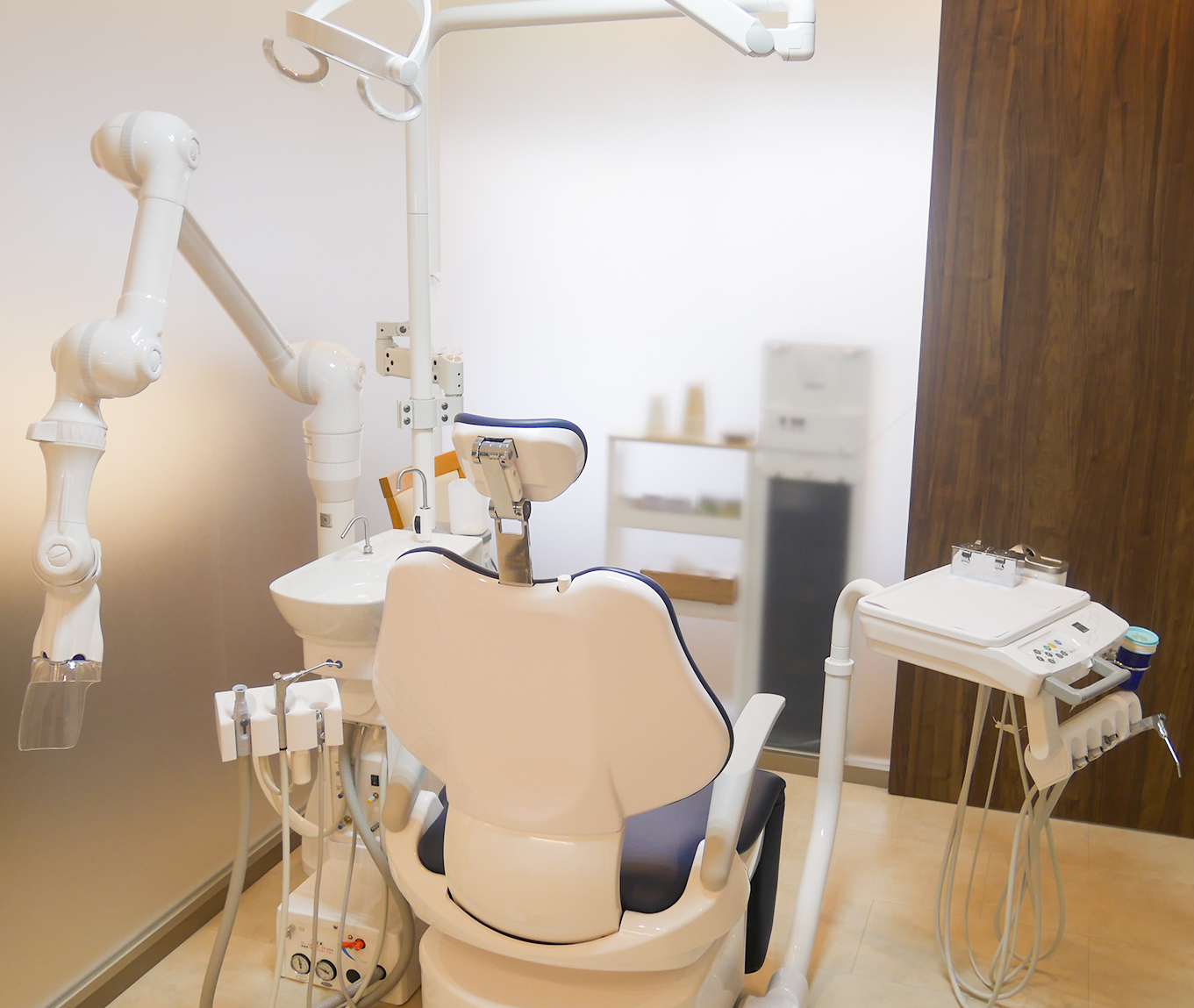 各診療室には治療中の飛散物や感染源となる飛沫を吸い込む口腔外バキュームを導入しております。