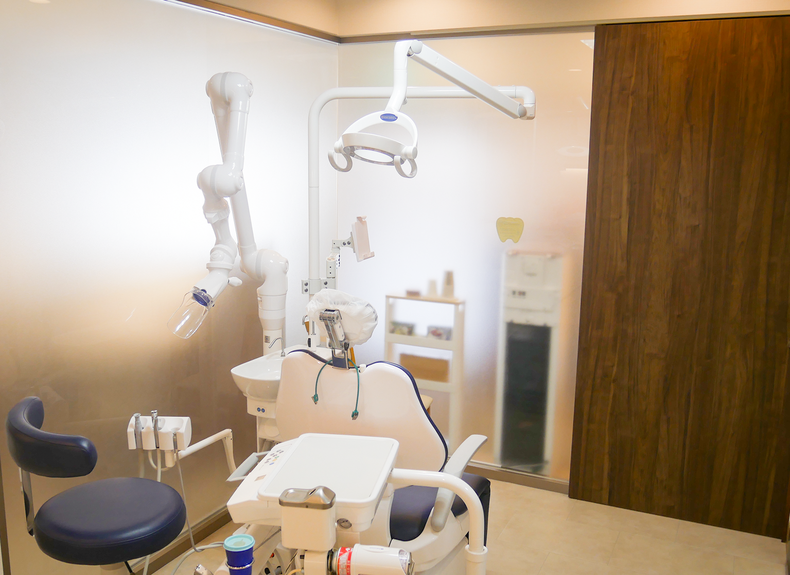 院内はバリアフリーで、待合室からそれぞれの診療室へ直接移動できる専用扉を設置しております。診療室は他の患者さまの視線が気にならない半個室でプライバシーに配慮し、さらに、患者さまの通路とスタッフの通路を分けて、緊張を和らげる工夫をしております。